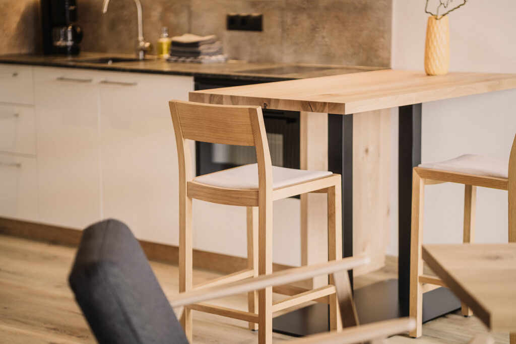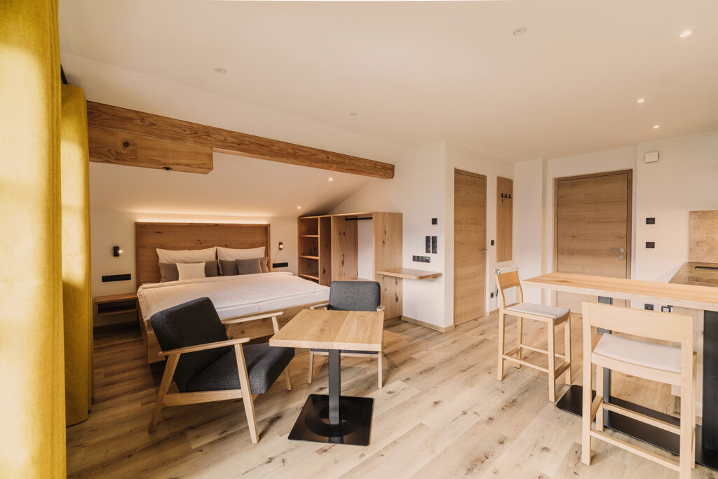 Wir bieten gemütlich ausgestattete Appartements mit möbliertem Sonnenbalkon und herrlicher Aussicht auf die umliegende Bergwelt.