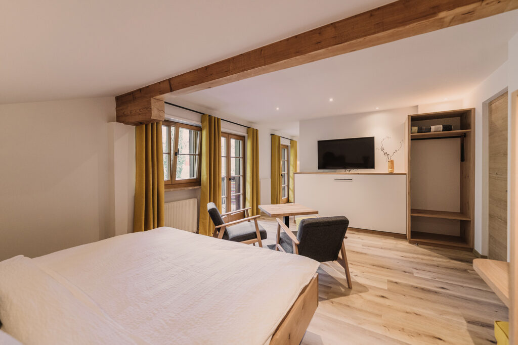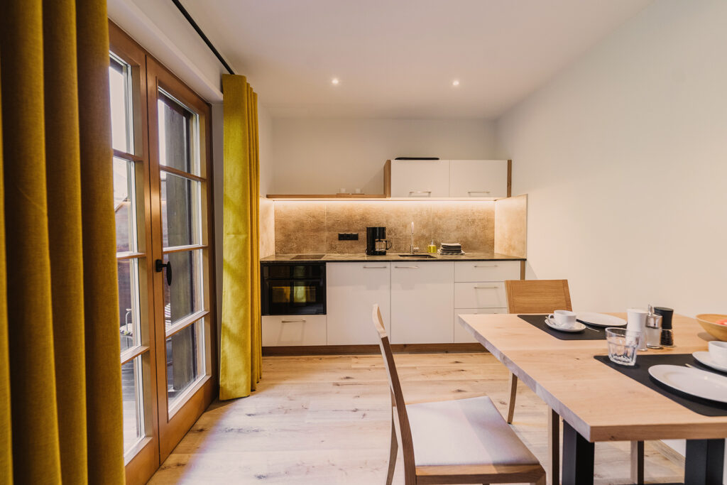 Gemütliches, großräumiges Einzimmerapartment mit separater Küche und Bad mit begehbarer Dusche. Großzügiger, möblierter Balkon mit schönem Ausblick auf den unverbauten Obstgarten und die herrliche Bergwelt.